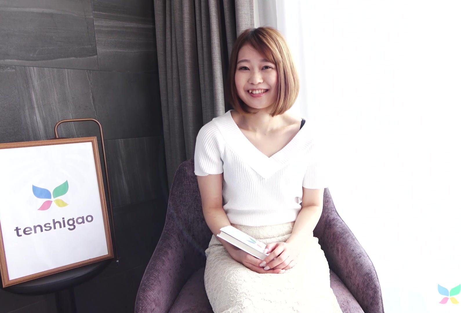 Asuka Suzumura meets us to have sex. On a chair, she spreads her legs and we play with her slit. She reacts very well. After sucking our hard dick, we fuck her. We enjoy take her in doggy style. She is so wet that our cock slides very quick.