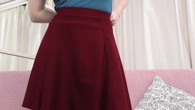 Hottie lies down on the couch and caresses her yummy pussy with her talented fingers