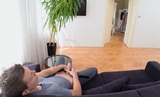 Well-hung dude comes up to a cutie from behind to thrust his dick into her shaved pussy