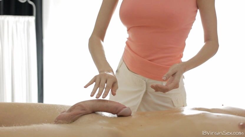 Young Mary is working on calming down her embarrassed naked client. This 18 year old has no idea that virgin sex is about to go down.