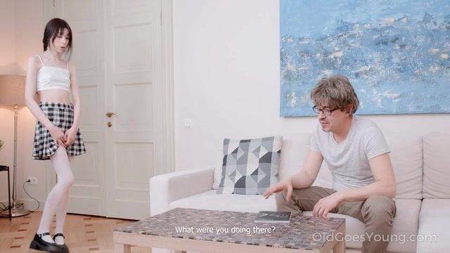 Stepdad checks what his stepdaughter wears under her mini skirt and tiny top