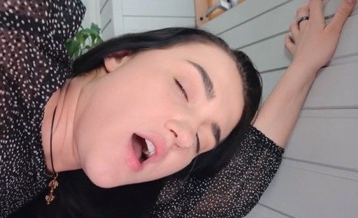 Half-naked brunette takes a doggy position and lifts her dress to give access to her pussy