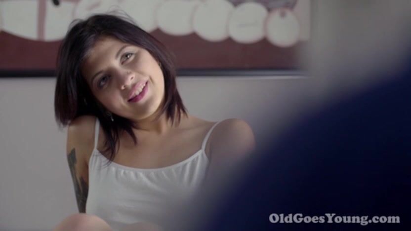 He is a grandpa already but he still loves watching a sexy cutie rubbing clit and slit. He keeps looking till she reaches fantastic orgasm on table in front of him.
