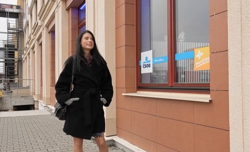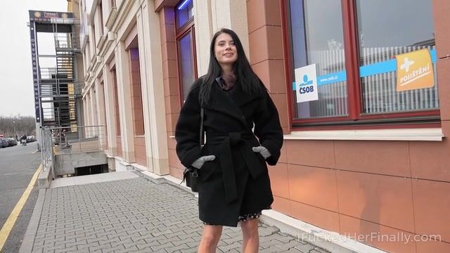 Dark-haired hottie opens her shaved pussy to give dude's tongue access to her pussy