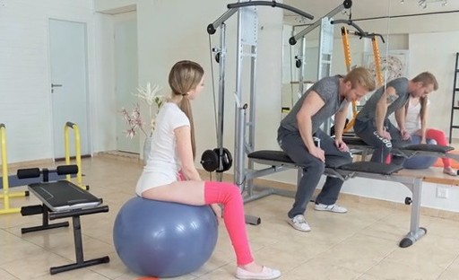 Kinky sportsman makes a skinny babe bend down as low as it is possible so he could fuck her