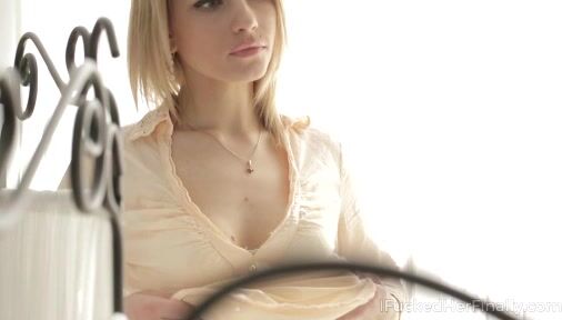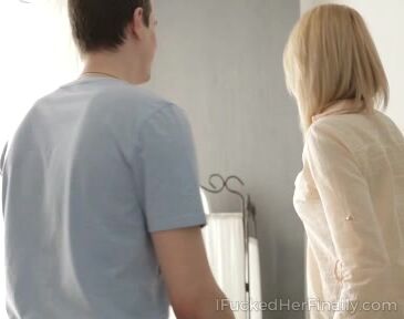 Blonde babe lies down on massage table onto her belly and raises her round bottom into the air to give her excited lover total access to her pulsating pussy.