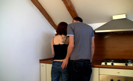 Horny slut was preparing a tea when her guest grabed her buttocks and made her ready for wild fuck.