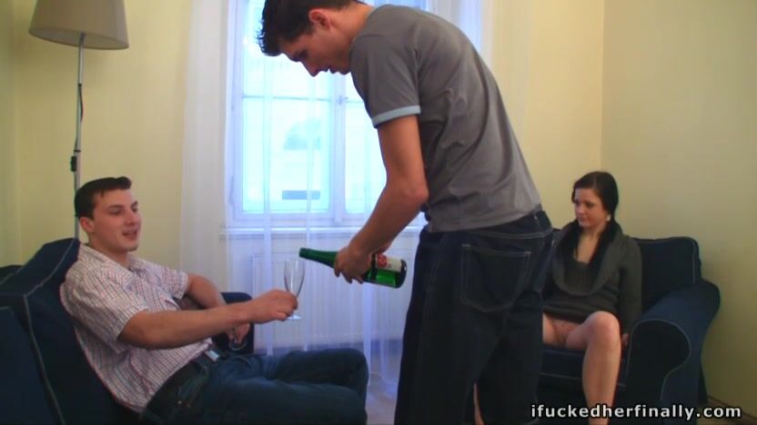 Tipsy girl moans fucking in threesome.