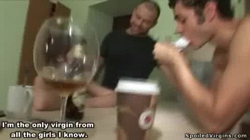 Two guys fuck an innocent teen girl and give her a good taste of big hard cock