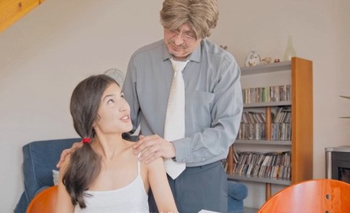 Tricky teacher helps a hot brunette to ride his dick so they both could get satisfaction
