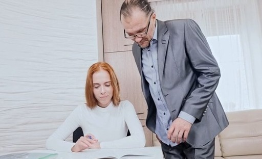Grey-haired teacher bares his big dick so his bad but hot student could suck it deep