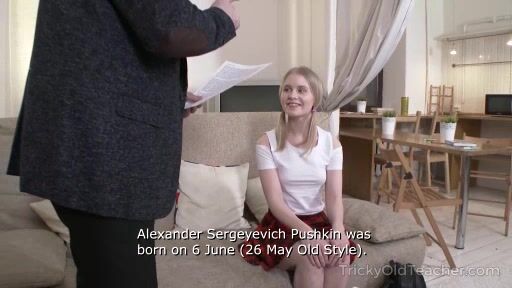Lazy babe pays her teacher a visit in the hope of getting a good grade but realizes that she has to do something in return.