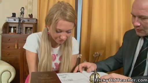 Teen coed doesn't like old men, but when the teacher started playing with her pussy she changed her mind.