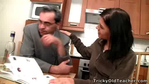 Adorable brunette rosebud bribes her strict old professor getting her dripping wet twat on his cock