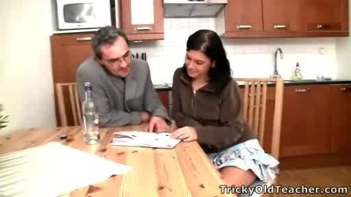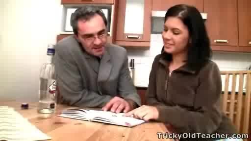 Dumb brunette coed has to become a slut for her horny old teacher that fucks all her juicy teen holes