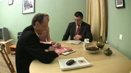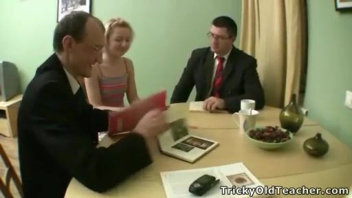 Old teacher and his assistant fuck teen coed.