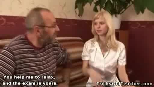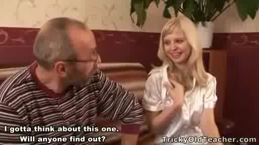 Old teacher seduces a young student and fucks her really hard in her tight pussy