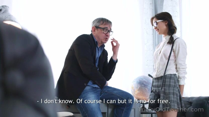 Sexy brunette student sits down on a hard dick of her teacher to give him many exciting moments and total sex satisfaction. Sure, she hopes to get something in return.