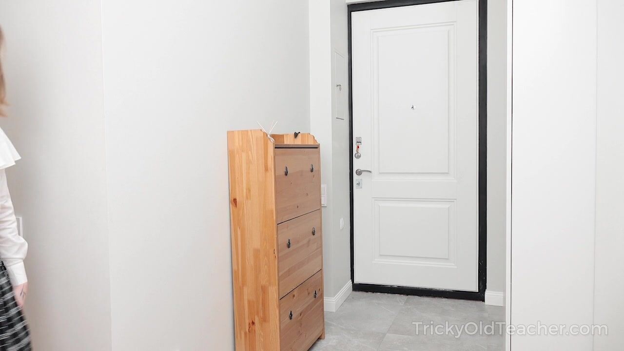 Kinky teacher enjoys the beauty of his seductive student's round ass and long legs