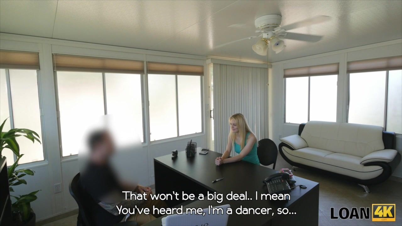 Blondie Allie was sitting in loan office in total despair. She needed money badly and all her incomes were unofficial. But she\'d caught credit manager attention with information about her work in strip-club as a go-go dancer. After that he made