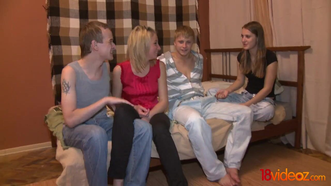 These two young couples couldn't fit themselves on one narrow park bench, but they shared the bed perfectly when they got home for some nasty sex partying. It all started with a little blowjob contest and the guys had to thank their girlfriends for great oral sex, so it didn't matter who fucked whose girlfriend as long as these chicks kept cumming hard and loud.