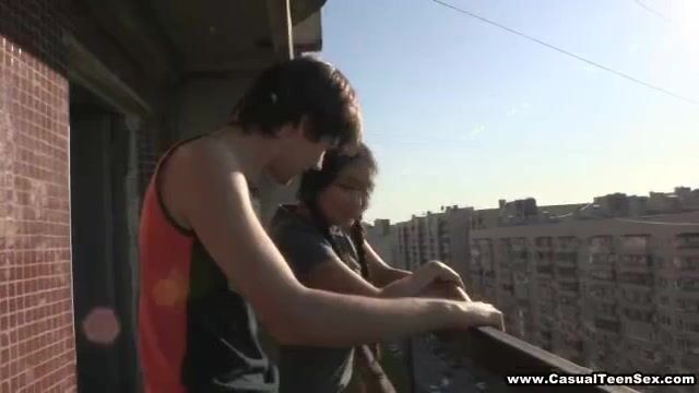 Having moved to a large city from a small village this Asian chick gets fucked by her hot neighbor on the very first day. The guy takes her to the balcony and the great view makes her so horny she just drops down on her knees and starts sucking his dick right there. He nails her tight pussy from behind and takes her home for another round of wild casual sex with cockriding, balls-deep pussy drilling and more. That's how you welcome a country chick to the city!