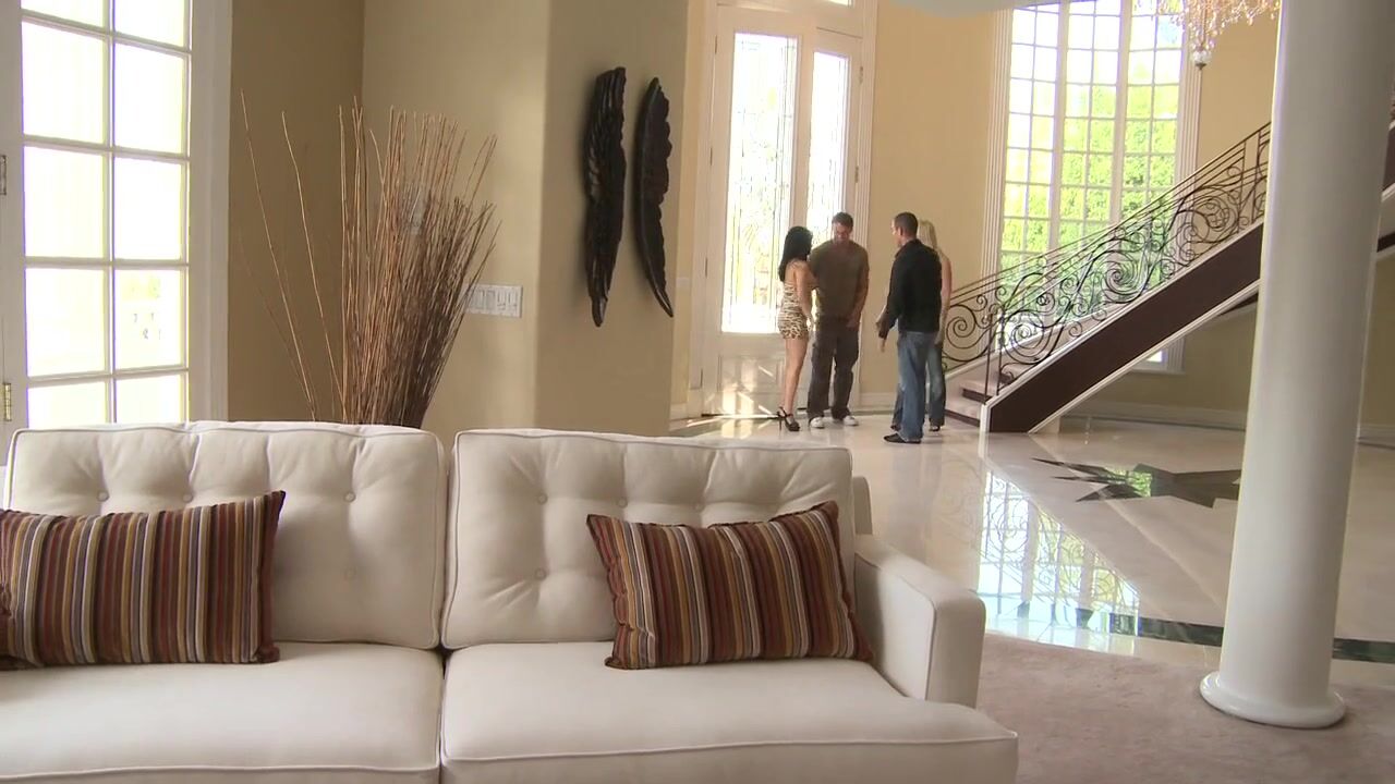 This horny couple wanted to have a quicky while their friends are having a soda downstairs. The gorgeous big breasted babe sucked her friend's big and hard cock before he went into her juicy cunt. She was moaning like crazy and could not wait for her dude to cum on her big tits.