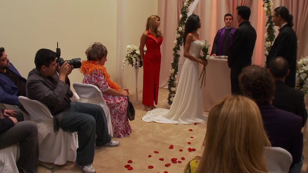 The best man is in the locker room helping his buddy's fiance pick out her attire for the big day. He tries to be friendly about it but the slutty bride keeps tempting the man. Every man has his limits and once the best friend sees the bride naked and her big tits with hard nipples standing in front of him, he snaps and goes in for the . He eats her pussy with a hurricane tongue and fingers her like he was drilling for oil. She loves it! The whore of a bride opens her legs and lets the friend pound her pussy in a crazily rough round of fucking. With her pedicured feet up great, the best man thrusts her beaten up pussy a few more times before she gets on her knees and sucks the cum out of humongous cock like it was her husband's. The nasty bridal bitch slurps all of his cum off her face and takes pride in the puddle of jizz that is glistening on her huge boobs. The groom doesn't need to know, does he?