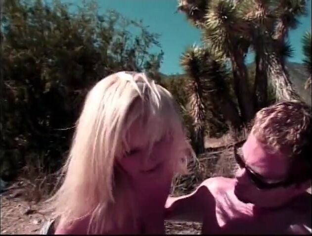 Busty blonde whore does outdoor sex with her new boyfriend and gets his cum in her mouth.