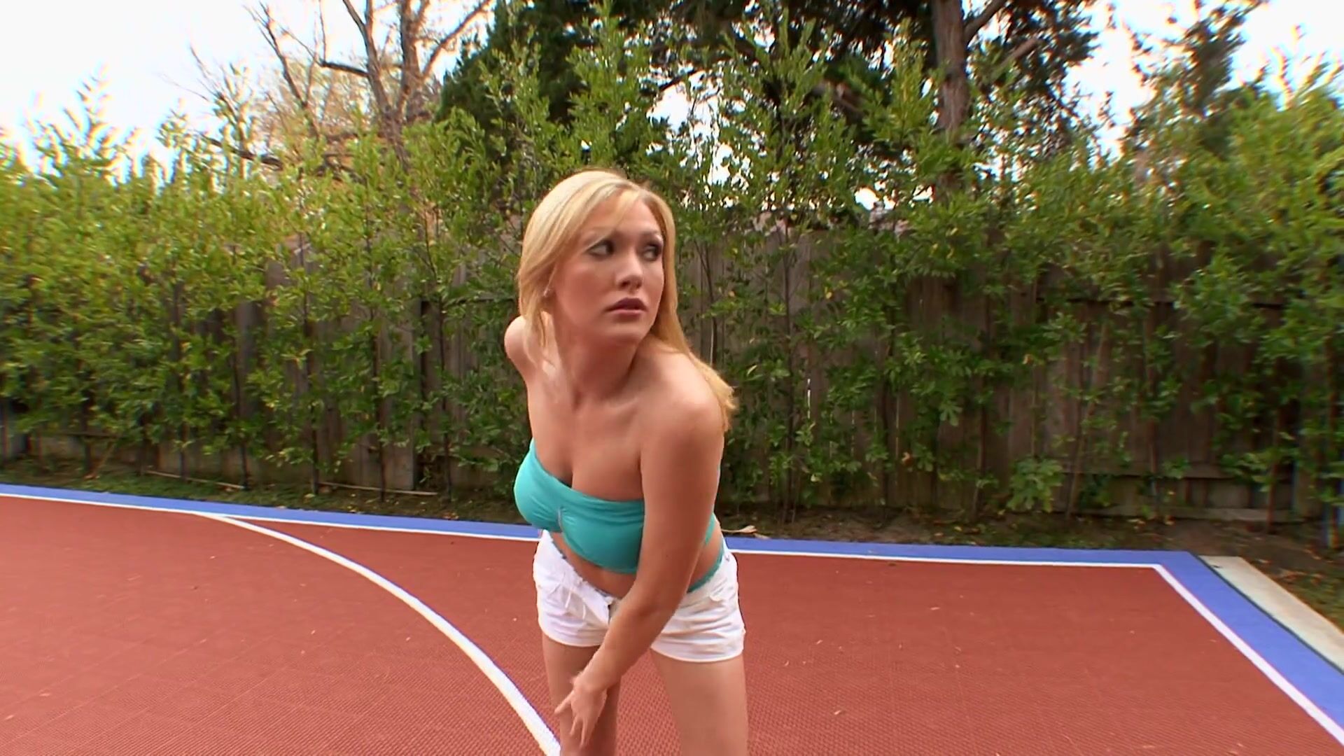 Busty blonde getting pounded after stretching outdoors