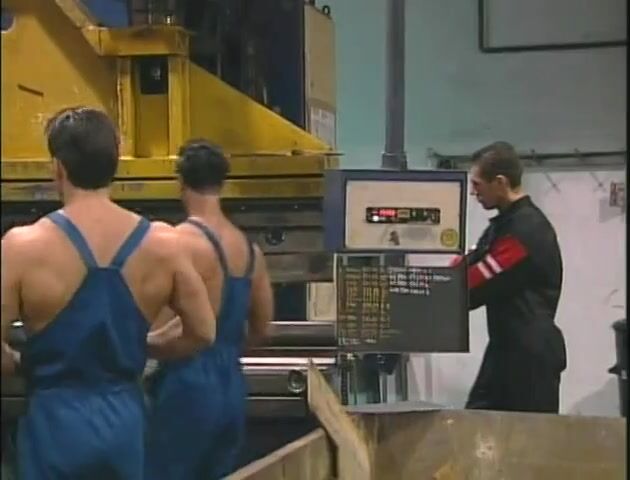 Factory coworkers sucking each others hard dick and slamming asses in homosexual threesome.