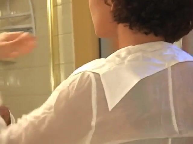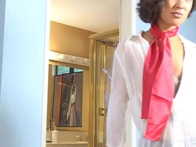 Brunette lesbian pleasures her blindfolded girl and sucks tittys