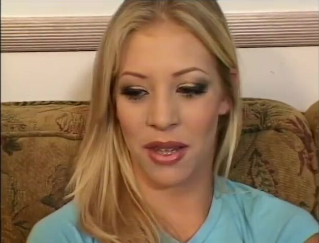 Petite blonde with braces screaming during anal fuck on couch