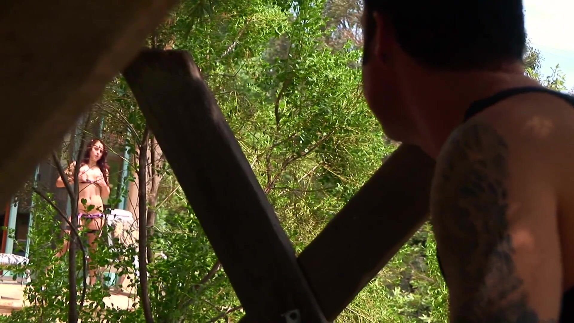 She touches herself when she watches the guy working outside and invites him inside for some hardcore fuck in front of her hubby. She takes that cock so wild proving her husband that she is anyone's little whore