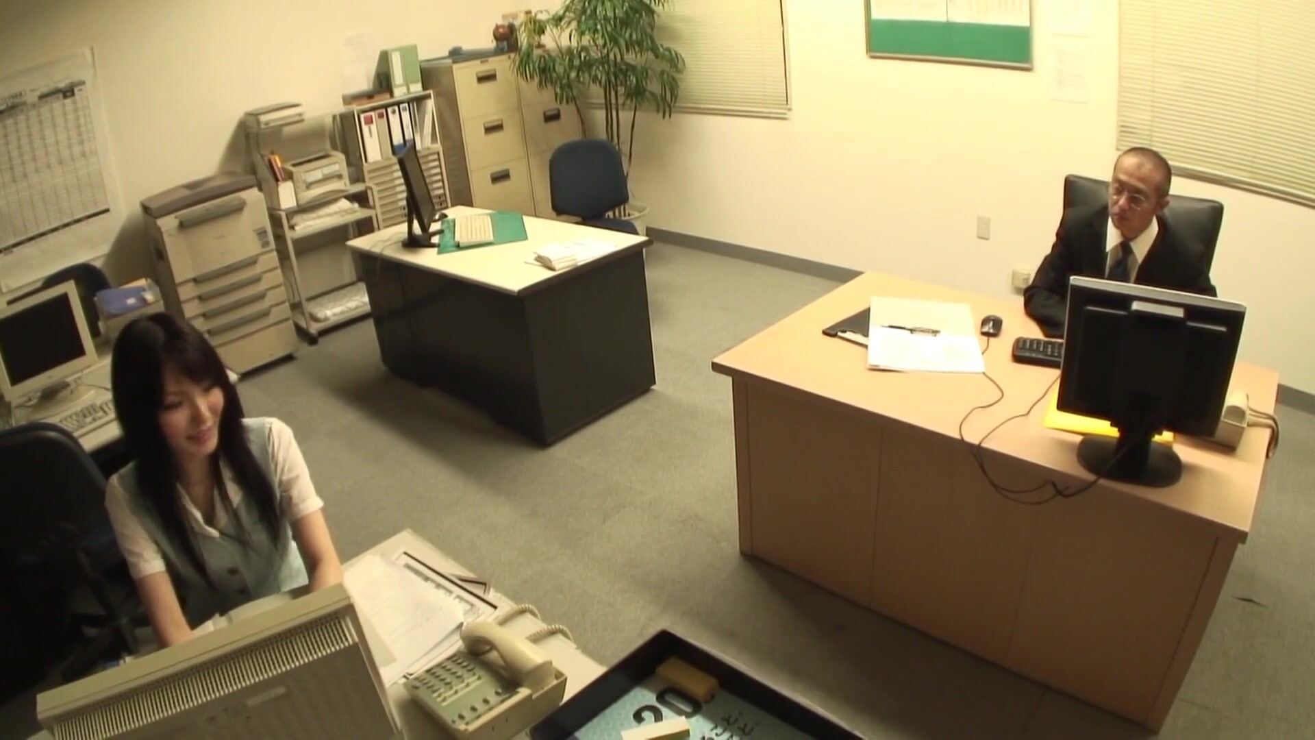 Attractive Japanese secretary stays in office after everyone has gone home, but she is taken advantage by one man who needs to put in a few extra hours of work. The man notices her gorgeous body and decides to work on her pussy instead of papers. He gropes her smooth body and kisses her delicate legs before taking off her panties. He licks her pussy and receives a sloppy blowjob from her before slamming his erect dick in her wet pussy. He pounds her pussy hard until he sprays his hot jizz inside.