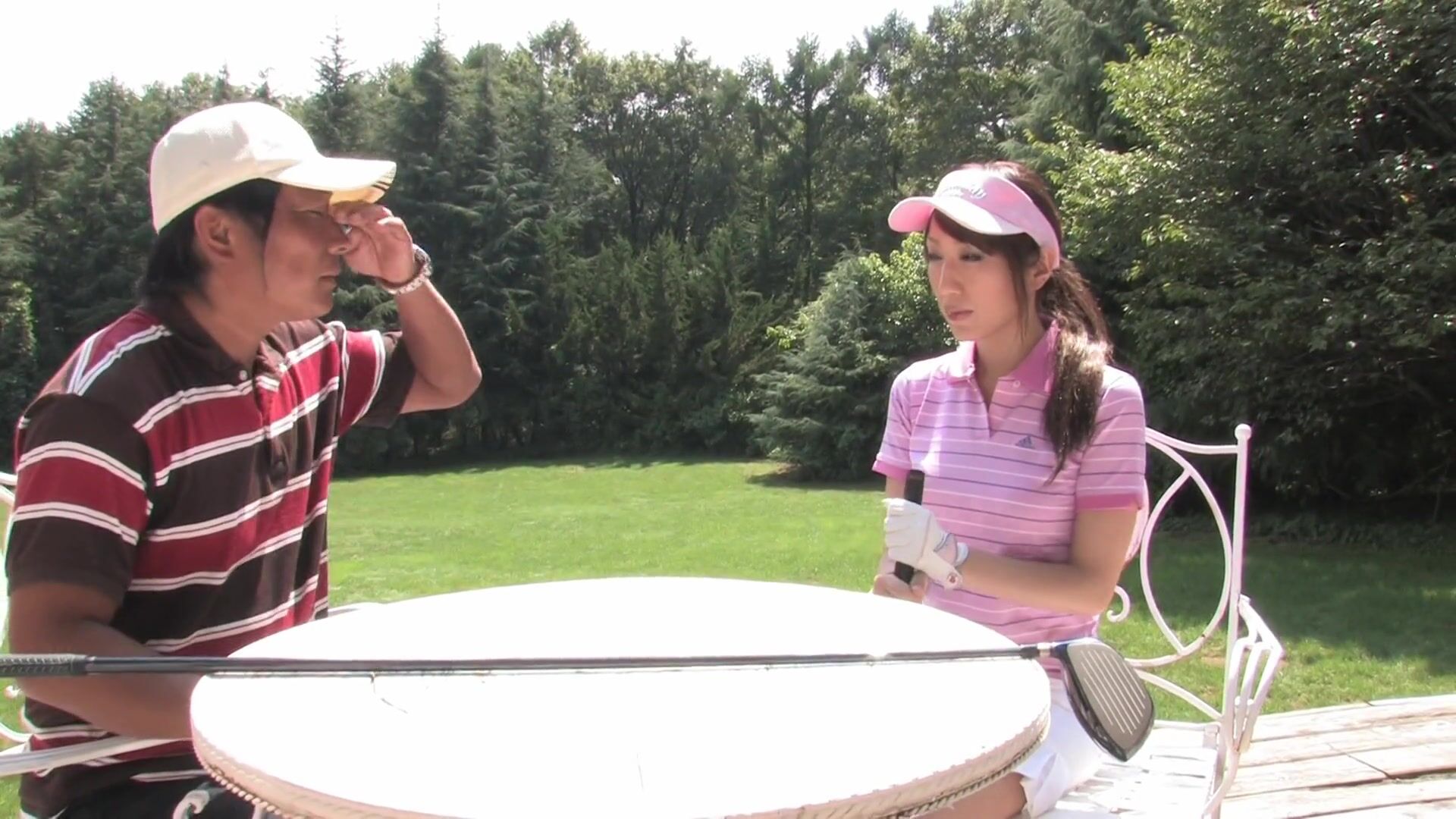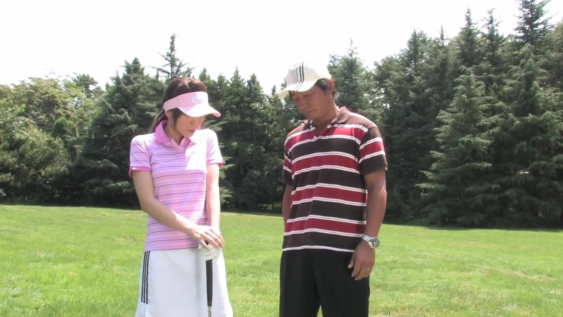Beautiful Japanese girl is out with her man on a sunny afternoon. Her lover wants to teach her how to properly play golf, but she has other things on her mind. She wants to show him that golf doesn't have to be serious all the time. Japanese cutie gets down on her knees and he whips his dick out. She doesn't waste any time and proceeds to wrap her delicate lips around his erect wiener. She slurps and wanks his stiff dong making him moan with lust. She gobbles his erect wang until he splashes hot cum on her pretty face.