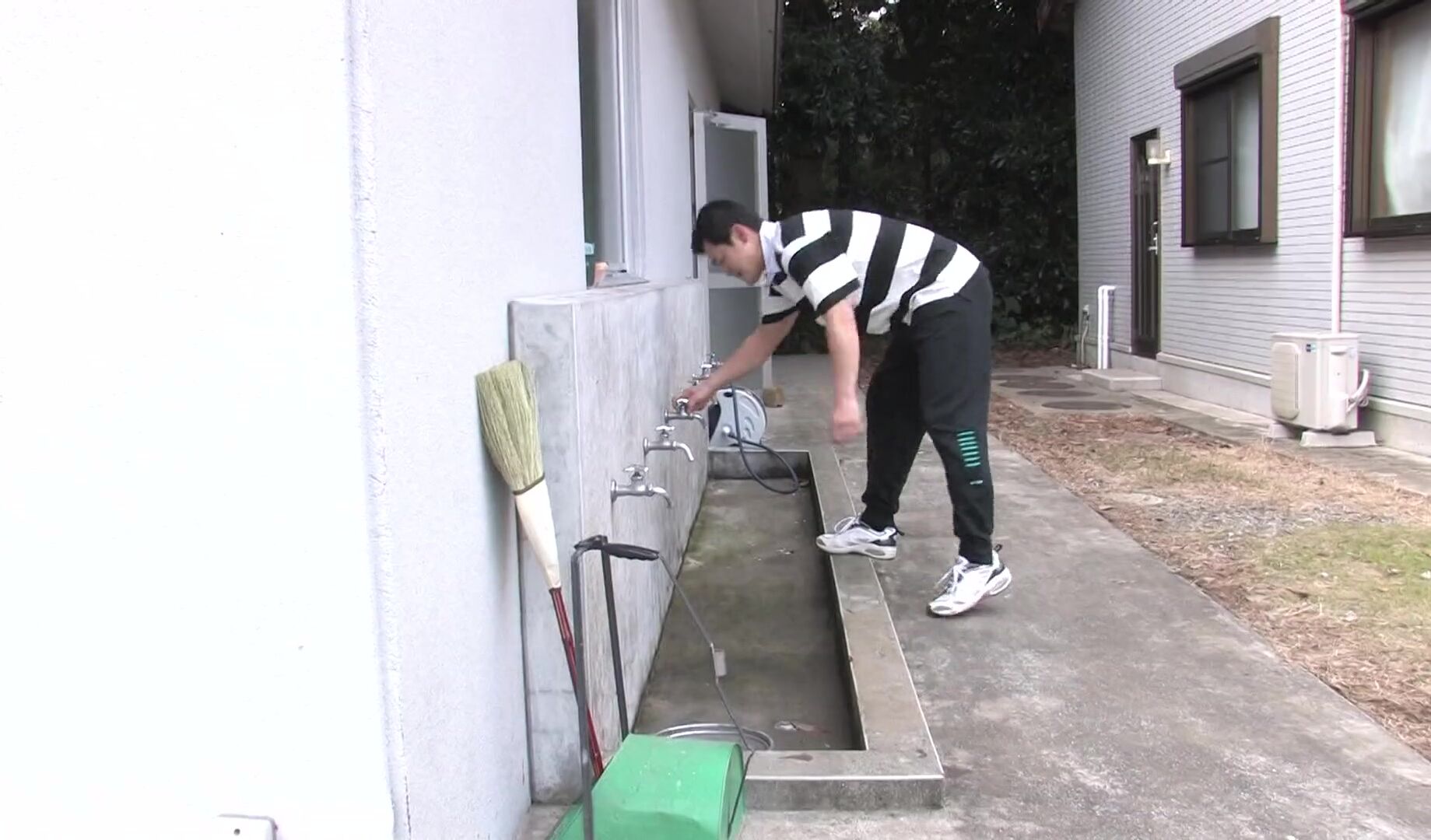 Alluring Japanese babe is going home after kendo practice, and meets up with a horny rugby player. He whips out his cock and she takes it lustfully in her mouth. Japanese hottie slurps his hard dick before he decides to share her with the rest of the team. He takes the girl to his rugby friends, and they immediately pounce on her. Horny dudes finger her sweet pussy and fuck her with a dildo before she gets down on all four. She is fingered from behind, and in the end she slurps their erect cocks until her face is caked in cum.