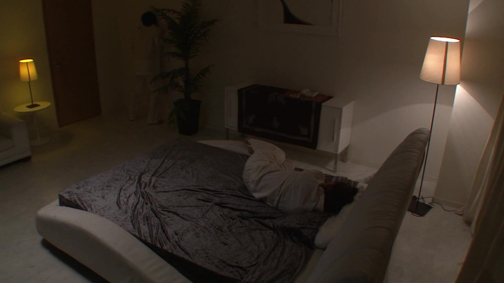 Kinbaku Nawa restrained on bed and becomes his slut slave to please his fetishes