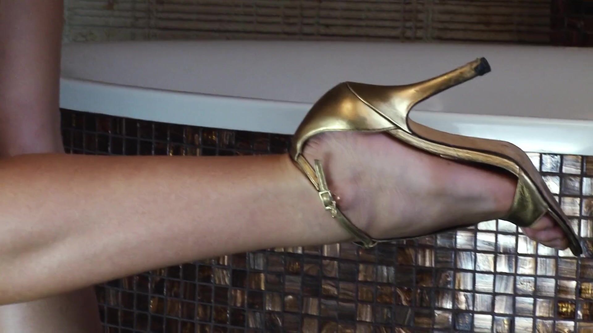 She puts on her lipstick while he is in the shower. She is a cock hungry slut always horny so she puts her stunning feet to work. He can't resist and starts licking them until she sits on his face for some pussy eating