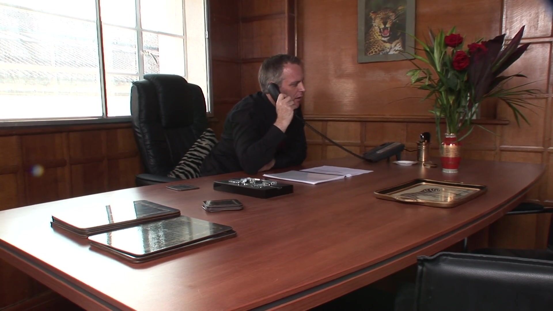 Glamorous black MILF fucks a white man in the office