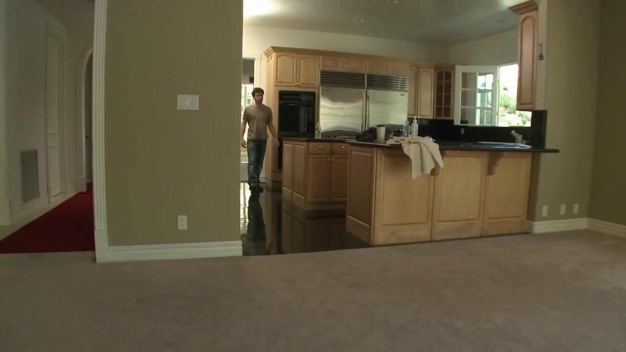 Gorgeous red haired cougar is wearing her bikini in the kitchen after sun bathing. A horny stud shows up to turn her fine day into an amazing day. He kisses her lips and licks her tits while taking her bikini off. She bends over the kitchen counter allowing her lover to lick her moist snatch. Her kinky lover grabs her fine booty and sticks his big dong deep in her wet cunt. Horny couple moves to various places in the house where they try out different positions. In the end, the stud fingers the MILF's pussy and she wanks his cock until he cums on her large knockers.