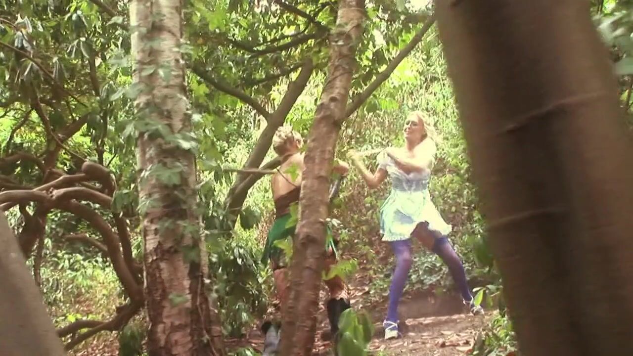 Cute blonde fairies are prancing in the forest when they run into two men with a busty blonde babe. A fight brakes out, but everyone knows that it is just an interlude to serious hardcore fucking. The girls get down on their knees and start slurping on erect dicks while the third girl licks their yummy twats. Horny dudes are satisfied with the girls' dick sucking skills, and they decide to reward them. Girls expose their sweet twats for the men who eagerly pound them hard. Lusty fairies are pounded rough until, finally, they get splashed in heaps of hot man goo.