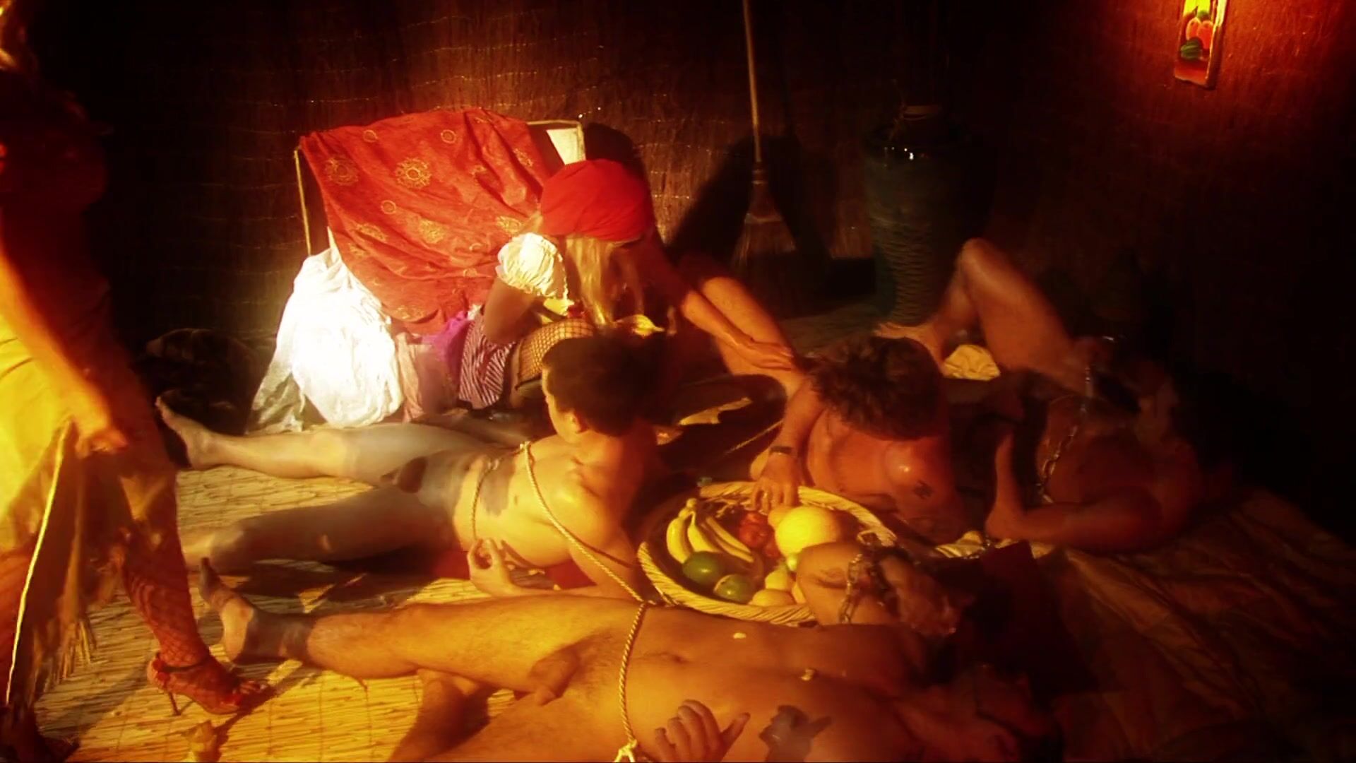 Usually, the men play to roles of pirates, but this scene turns things around a bit. These whoring fuck-tarts are the ones taking advantage of the slaves in the likes of strapping studs bondaged up in chains. The thing carrying this entire scene can be described with a single word: filthy. With enormous fake tits and sexy outfits that include leather and fishnet stockings, these whores look as filthy as ever. Adding to the fact that the entire scene gets insanely hotter as the finish approaches, this entire scene is made for slow and steady wank session, if you can make it to the end of course.