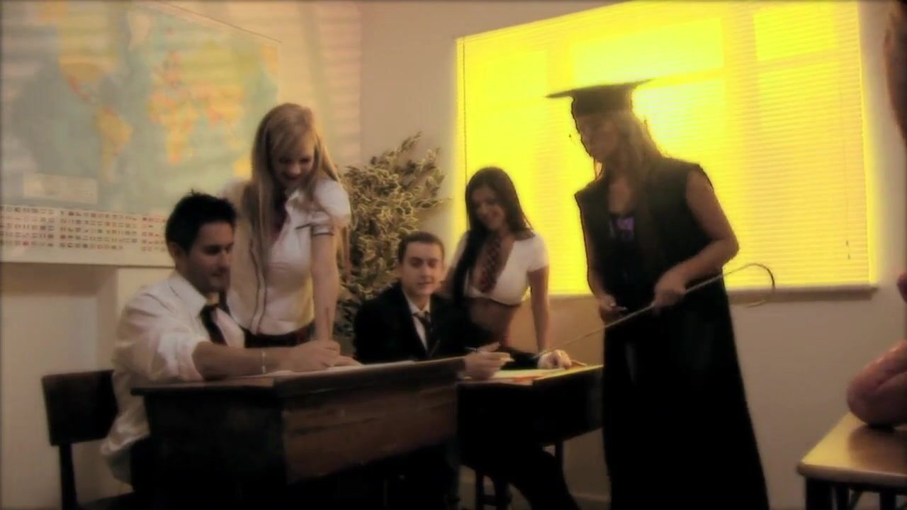Today's subject in the art class was about drawing nude both men and women. Teacher even provided them with both naked man and woman! Reason for that was to make it easier for the students to do the drawings. It seemed like a great success all until they started to misbehave! Students were easily disrupted and quickly lost the will to do what teacher tells them. Instead they started sensually kissing and touching each other! But that was just the beginning! Soon enough they started banging like crazy in the middle of the classroom and the teacher got drilled as well!