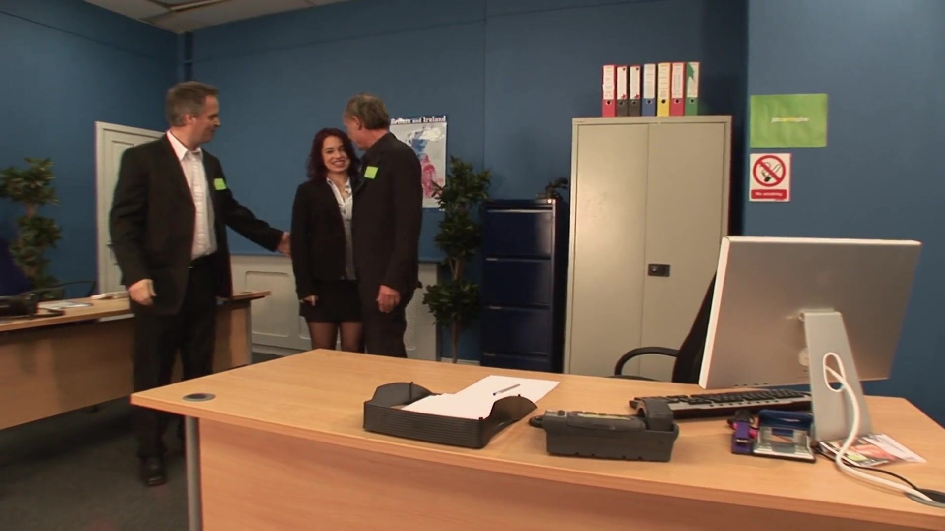 Old porn legend Ben Dover is eager to test this wonderful Russian slut named Olga in his office. Get ready for some kinky sex with a great-looking babe with natural curves! She needs a job right now and there's only one way to get it. A horny dude and his helpers are here to test this wonderful chick in a very nasty way. Olga shows her juicy natural tits and that hairy cunt right in the beginning. These gentlemen get sucked off by a horny chick, she really needs some hot stuff immediately! Dudes take turns to fill all her holes and she's so into it! They give her nice facials in the end, it seems like this whore is perfect for this XXX job!
