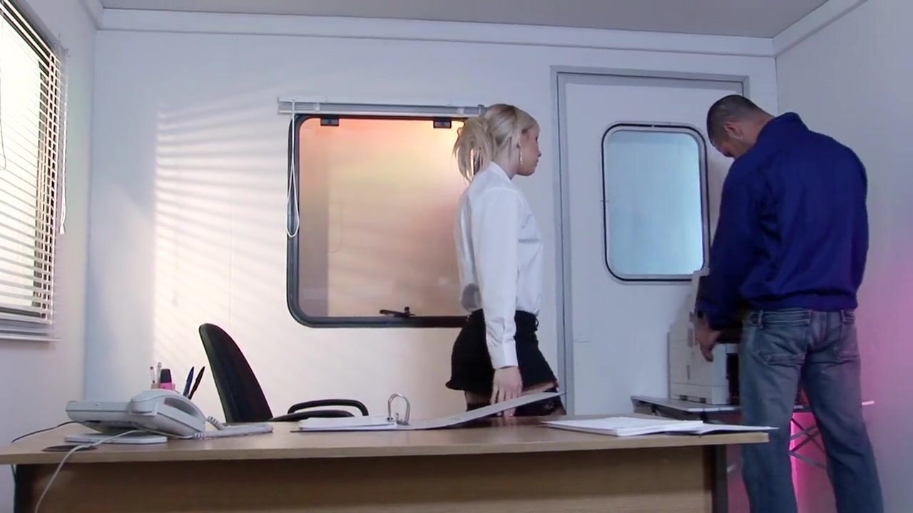 Beautiful blonde babe is very bored in her office, so she calls up her handsome repairman for some nasty fun. Her printer is OK but she needs to get her tight pussy fixed right now! A well hung lover is here to help for sure. Hottie in sexy black lingerie wants to show off her long legs and that round ass, aint she hot? Her lover is already rock solid, babe is eager to check out his meat pole. Hottie gets down on her knees for some first class dick sucking. Well hung man wants to screw her on the table. They exchange a few hot sex positions with pleasure. Petite chick gets a creamy dessert right in her mouth.