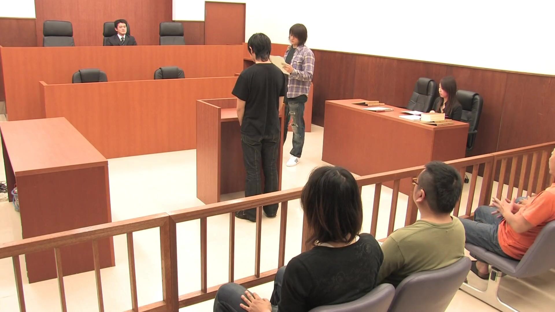 Japanese slutty judge caught in a hot blowbang and ganbang inside the courtroom with bunch of horny guys! She is on her knees, embracing that cock with her mouth until they are stiff and ready for a fucking. She is blowing one cock while she is jerking off another two at the same time! When they put her on the desk, they are inserting some kind of tube inside her pussy, and that made her super horny! She is getting pounded hard form a behind in doggy style pose, and when she spreads her legs it was a good time for an awesome cum in mouth!