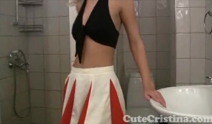 Blonde Superstar Cute Cristina loves to get naked and show off her small pussy, she just looks so cute! She needed to take a shower but before she could do that she had to just show off her small pussy and small tits.