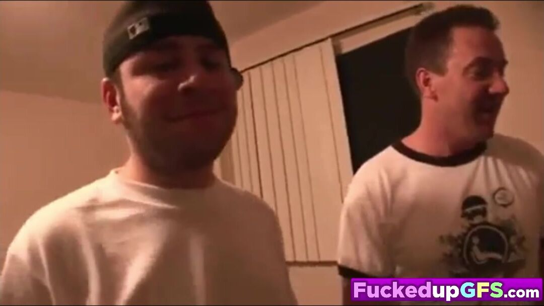 two guys went jaylynn Sinn on the hotel showing her small tits and butt. She blowjob big dick on the car while flashing her small tits