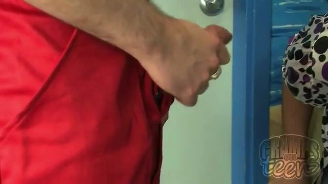 Horny Brunette Teen Deep Throats Lucky Old Man Huge Dick